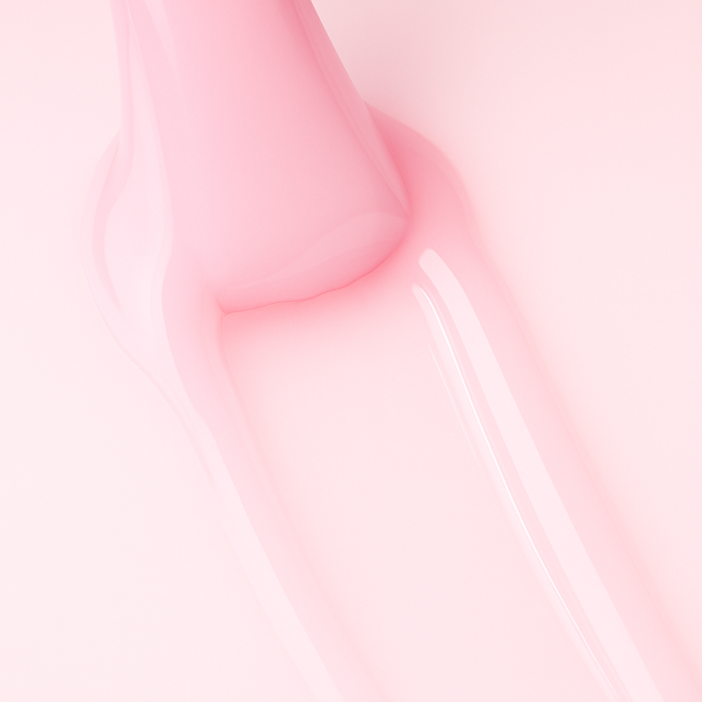 1. Appliquer une base adaptée puis une couche suffisante de " Pink Bloom Base " pour renforcer l’ongle préalablement préparé.